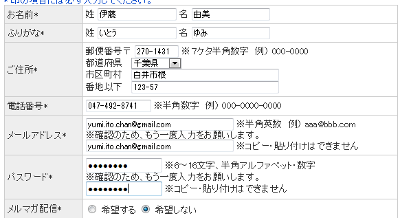 ・メールアドレスはお間違えないように気をつけてください。