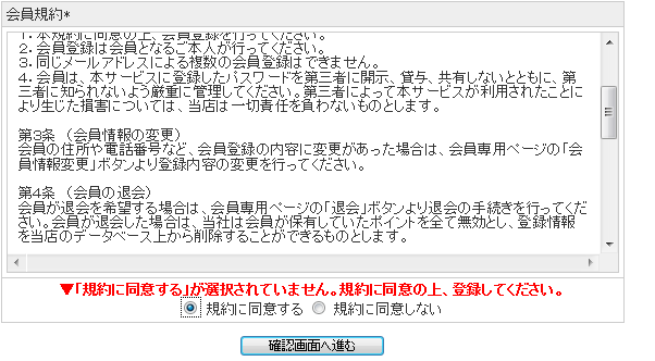 ・規約に同意するを選択し、確認画面へ進むをクリック!
