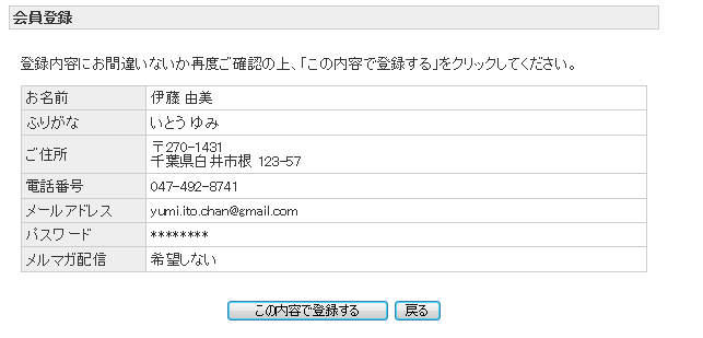 ・間違いがなければこの内容で登録するをクリック!